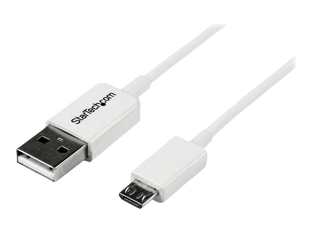A to Micro B - Micro USB Charging Data Cable - USB 2.0 - 1x USB A Male, 1x USB Micro B Male (USBPAUB2MW) - USB-kabel - mikro-USB typ B (hane) till USB (hane) - USB 2.0 - 2 m - formpressad - vit - för P/N: USBEXTPAA1MW, USBEXTPAA2MW, USBEXTPAA3MW, USBPAUB1MW, USBPAUB50CMW