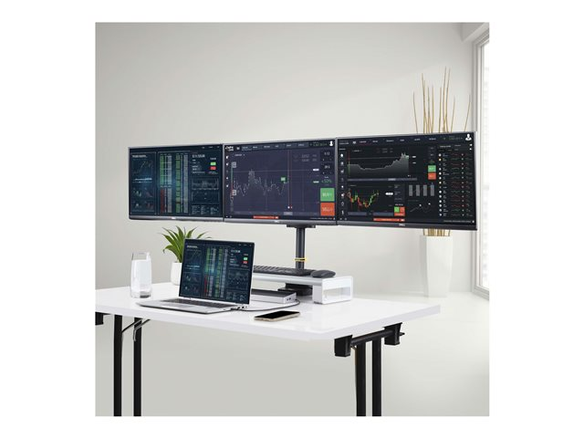 Monteringssats - justerbar arm - för 3 LCD-bildskärmar - plast, aluminium, stål - svart - skärmstorlek: upp till 27 tum - disk-monteringsbar